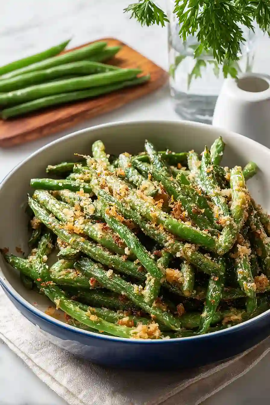 - Remove the baking sheet from the oven and let the beans rest for just 1-2 minutes. Transfer them to a serving dish while they're still warm so the parmesan stays slightly crispy on the outside. Serve immediately to enjoy the best texture and flavor.